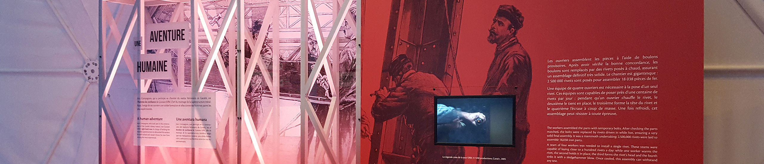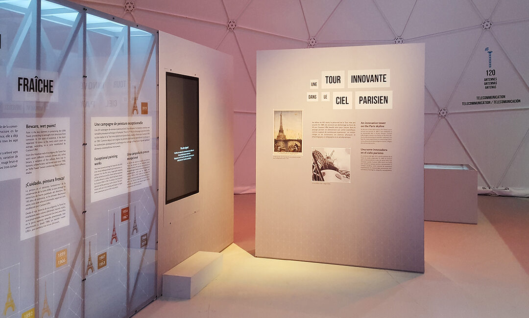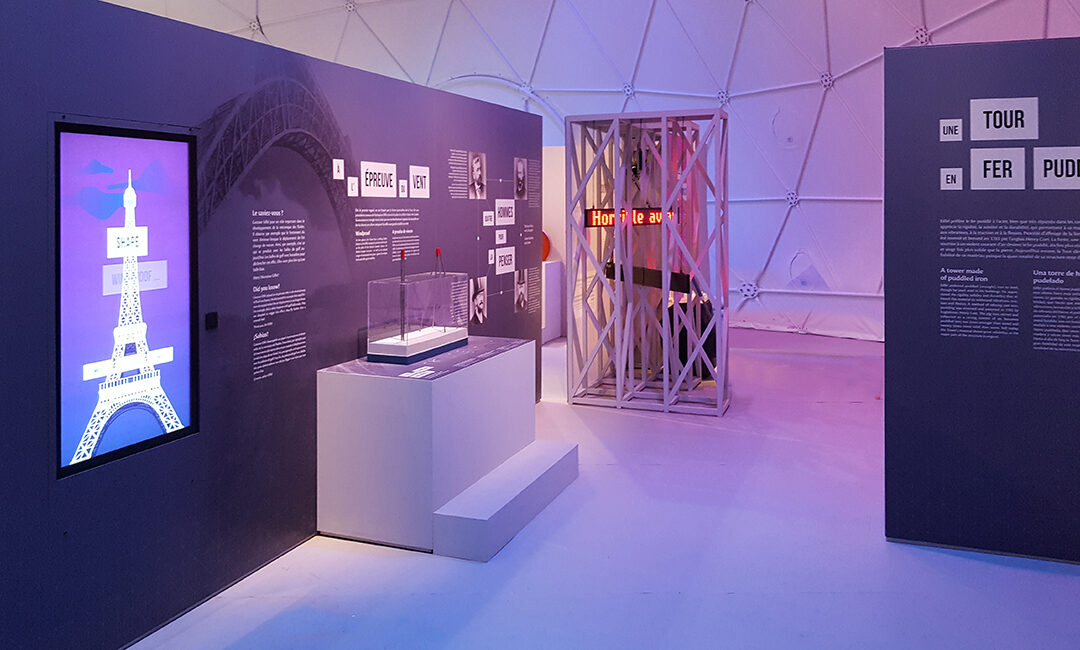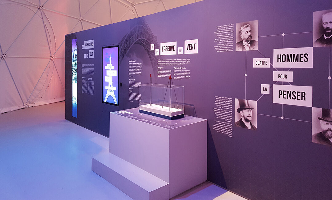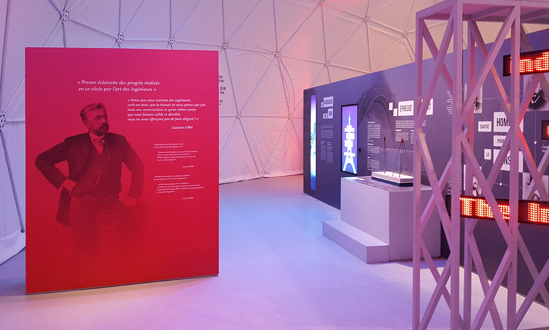 L’exposition temporaire a fait honneur à la Dame de fer en célébrant ses 130 ans. Présentée dans un dôme situé sur le parvis de la Tour Eiffel, l’exposition retrace l’aventure de sa construction, des innovations qui ont permis d’effectuer ce chantier en un temps record, du fer lorrain utilisé par Gustave Eiffel jusqu’aux hommes qui y ont contribué. Une épopée passionnante et vibrante, à découvrir à travers films d’archives, bornes multimédias interactives, jeux didactiques, manipes d’objets… adaptés à tous les publics.
